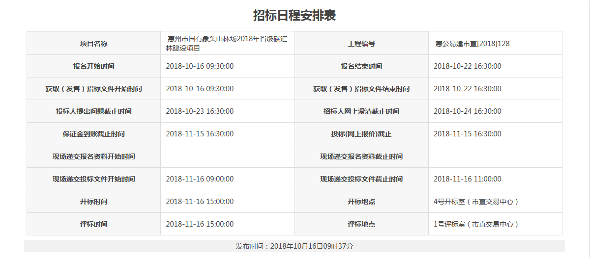 惠州市國有象頭山(shan)林場2018年(nian)省級碳(tan)匯林建設項目招(zhao)標公告