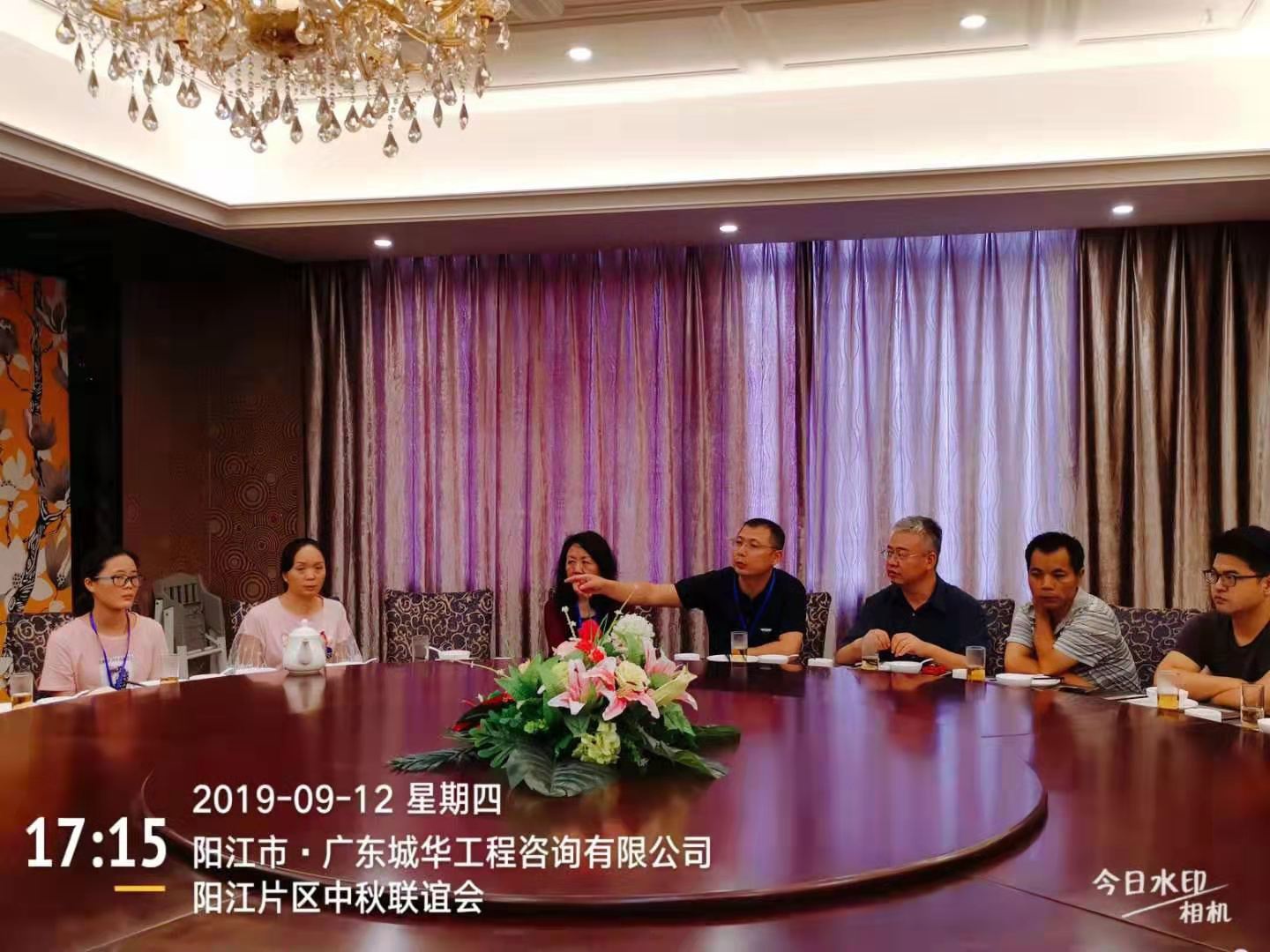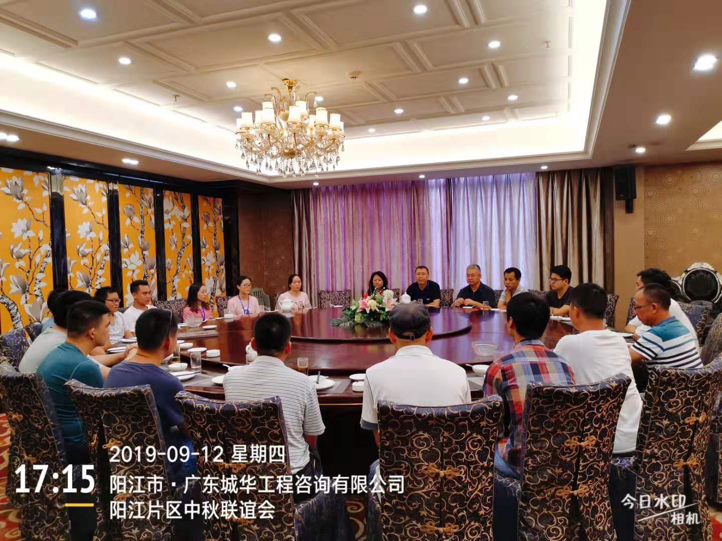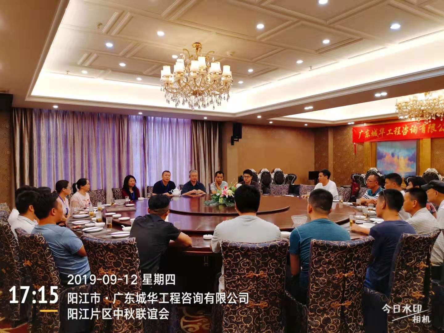 9月12日下(xia)午,劉偉總經理從工地現(xian)場(chang)檢(jian)查回來后,帶領工程(cheng)部經理李勇、工程(cheng)部副(fu)經理鐘(zhong)曉冬、財(cai)務部經理劉文麗、行(xing)政部經理劉群麗,來到九州城酒店,與(yu)陽(yang)江片區(包括(kuo)陽(yang)東項(xiang)(xiang)目部、陽(yang)西項(xiang)(xiang)目部、陽(yang)春項(xiang)(xiang)目部)的現(xian)場(chang)負(fu)責(ze)人(ren)及所有監理人(ren)員一起(qi)參加(jia)中秋聯誼座談會(hui)。